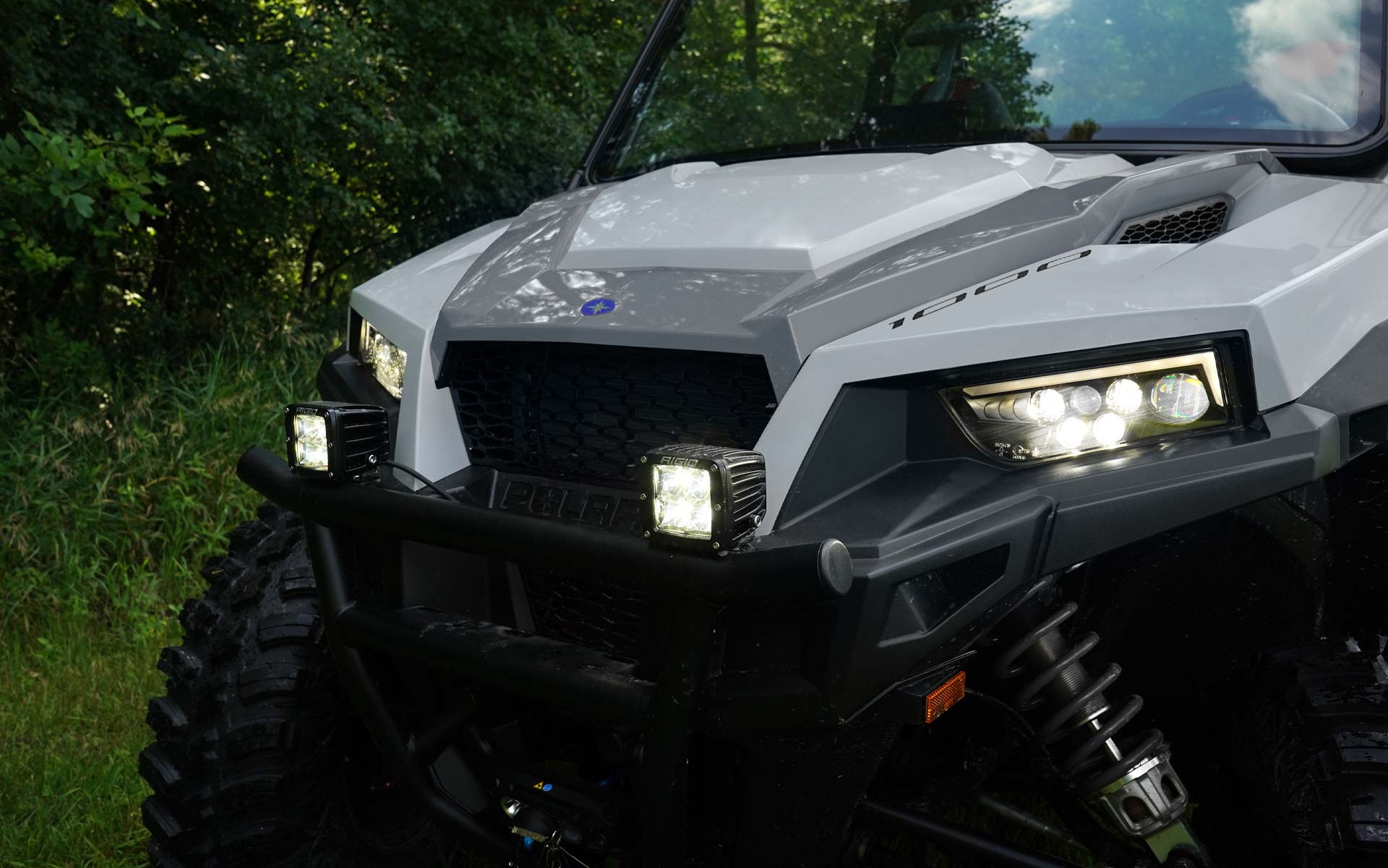 ProFit sport roof. DC outlet. POLARIS HD 4500 LB Winch with Synthetic Rope, aluminium fairlead, rubber isolator. Sport low-profile front bumper.